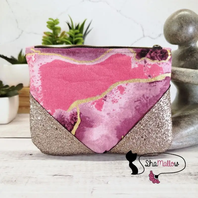 Envie d’un accessoire à la fois ravissant et pratique pour ranger vos trésors les plus précieux ? Laissez-vous charmer par ce portemonnaie/trousse, une création artisanale réalisée avec passion en tissu wax au motif marbré rose avec dorure et simili cuir.