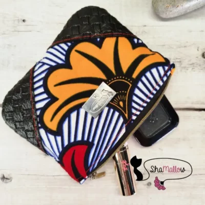 Plus qu’un simple portemonnaie, cette pochette est une véritable ode à l’élégance et à la féminité. Le tissu wax, aux couleurs vives et aux motifs floraux captivants, attire tous les regards et insuffle une touche d’exotisme à votre quotidien. Le mariage harmonieux avec le simili cuir noir apporte une note de raffinement et de modernité à l’ensemble.